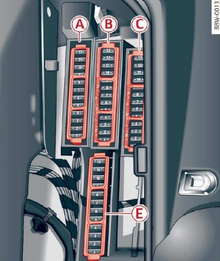 Distribuzione dei fusibili nell’abitacolo (nel vano gambe) (2018)