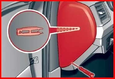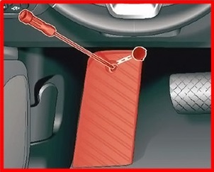 Il secondo si trova nel poggiapiedi del conducente nei veicoli con il volante sul lato sinistro o dietro la copertura nello spazio per le gambe del passeggero anteriore nei veicoli con il volante sul lato destro.