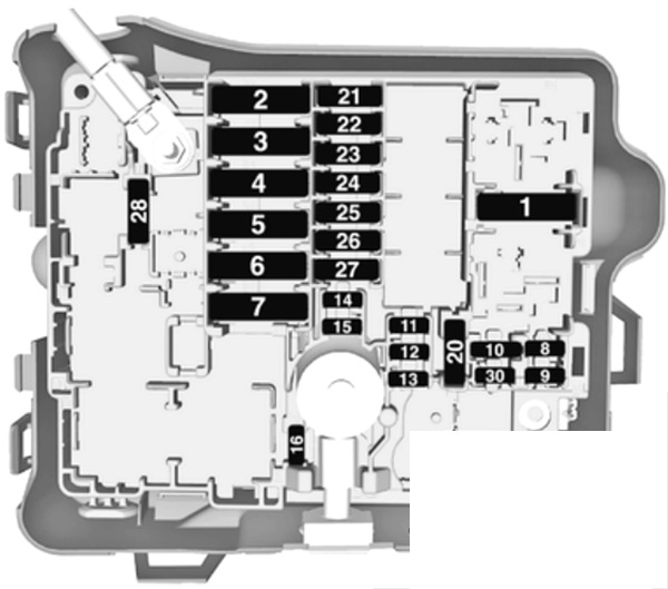Opel Crossland X (2017-2019…) – Schema della scatola dei fusibili