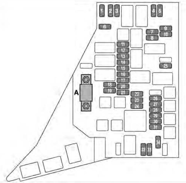 Pannello dei fusibili situato nel vano motore