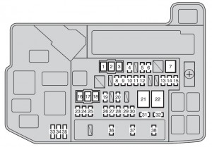 Toyota Auris Hybrid (2011-2012) – scatola dei fusibili Schema della scatola dei fusibili