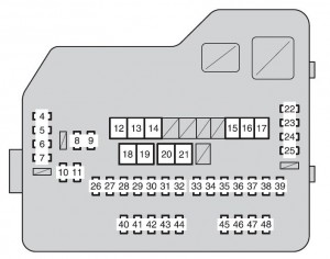 Toyota Highlander Hybrid (2009-2010) – Schema della scatola dei fusibili