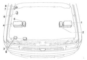 | 1 | Caixa de fusíveis (gasolina, LHD Diesel) | |||||||||||||||||||||||||||||||||||||||||||||||||||||||||||||||||||||||||||||||||||||||||||||||||